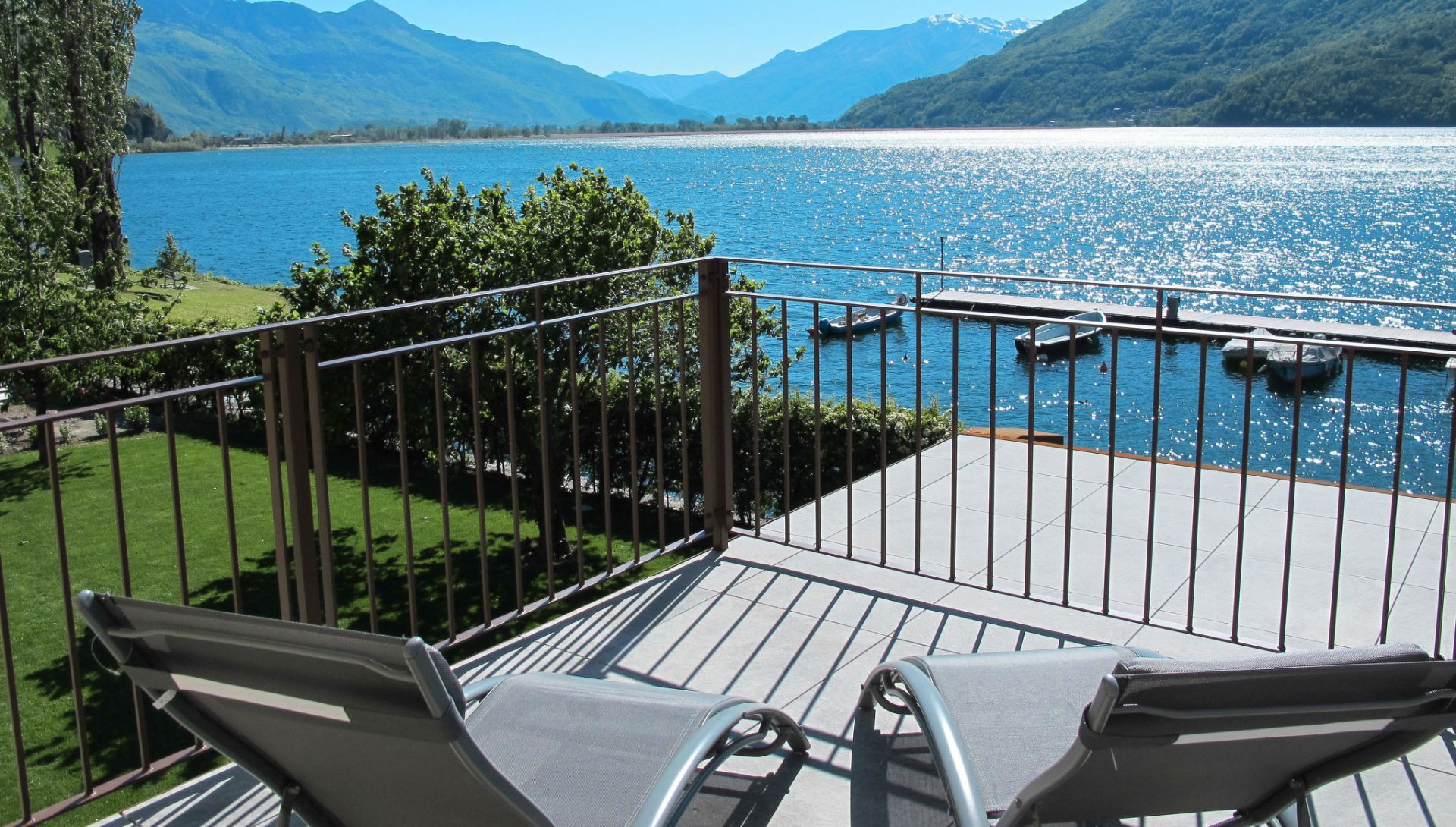 Terrassenmöbel, Gartengrill, Liegestühle (8). Sehr schöne Panoramasicht auf den See und die Berge.