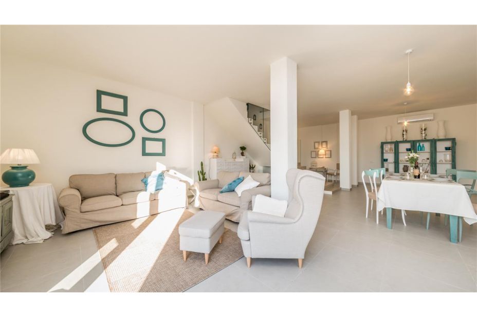 Eine Innentreppe führt ins obere Erdgeschoss mit separatem Eingang, bestehend aus vier Doppelzimmern und drei Bädern mit Dusche.