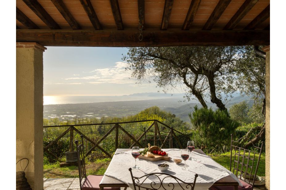 Vom überdachten Porticato haben Sie einen fantastischen Blick auf die umliegende Landschaft und das Tal von Viareggio,
