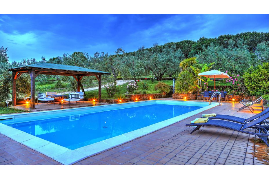 Der Pool befindet sich in einem zentralen Platz im schönen Garten vor der Villa, von der es eine Handvoll Meter entfernt ist und entlang einer gepflasterten Gasse erreichbar ist. Das rechteckige Becken, ausgestattet mit einer Leiter für den Zugang zu Wasser, misst 5 x 12 m und hat eine gleichmäßige Tiefe von 1,20 m. Es ist mit Folie belegt und wird mit Chlorbehandlung gereinigt.