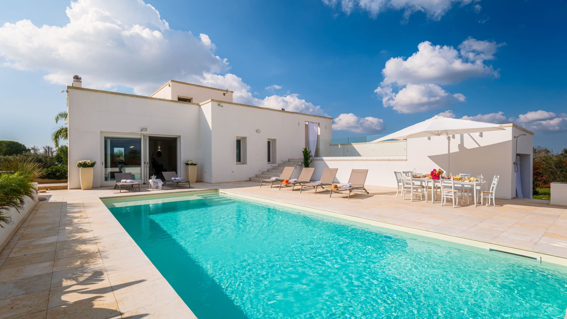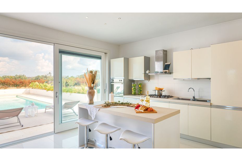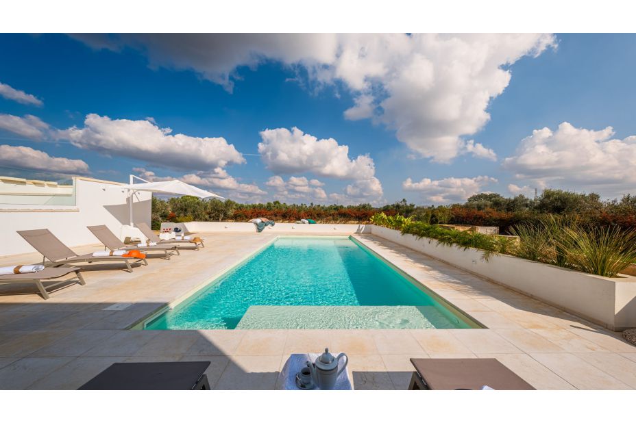 Die VILLA DIMORA SOLARIS ist eine moderne Ferienvilla und liegt in der Landschaft vor den Toren von Ugento, nur eine kurze Fahrt von den weißen Sandstränden von Torre San Giovanni.