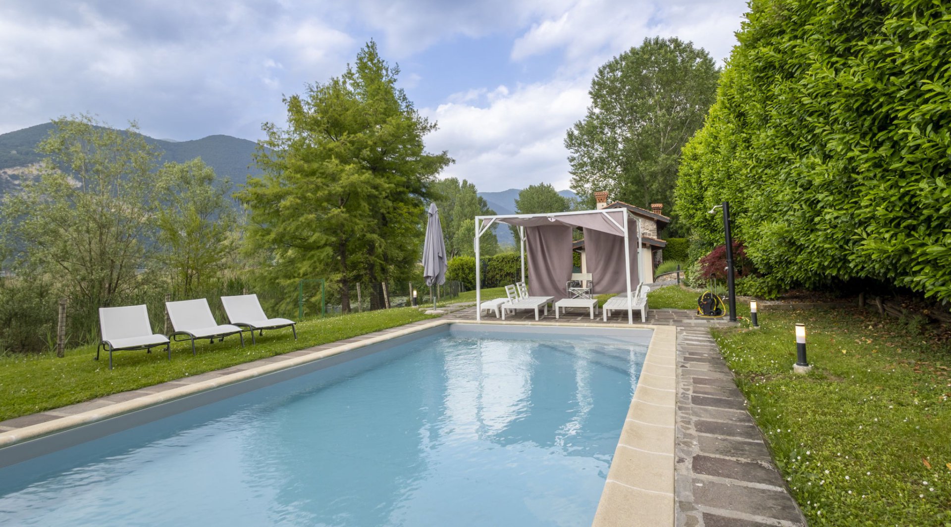 Im umzäunten und großen Gartenbereich mit Rasen und Pflanzen (800 m²) steht den Gästen ein schöner Pool zur Alleinbenutzung mit Liegewiese und Pavillion zur Verfügung.