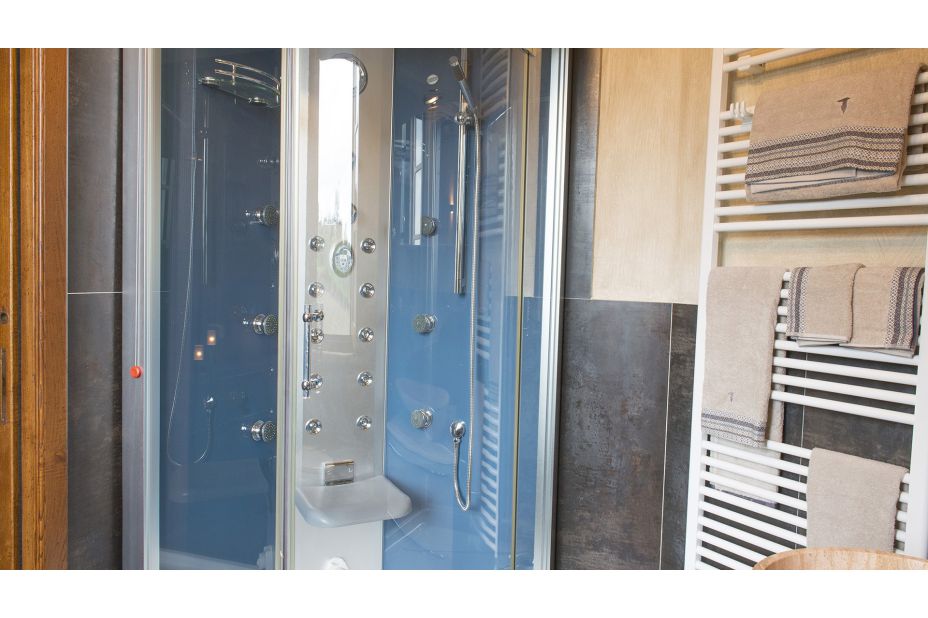 Ein Waschraum befindet sich im Badezimmer mit Dusche am Poolservice in der Nähe des Haupteingangs im Erdgeschoss.
