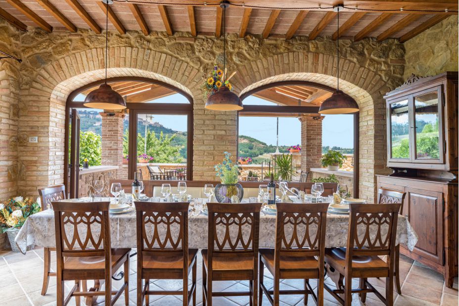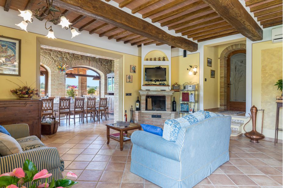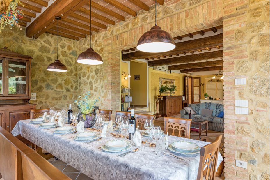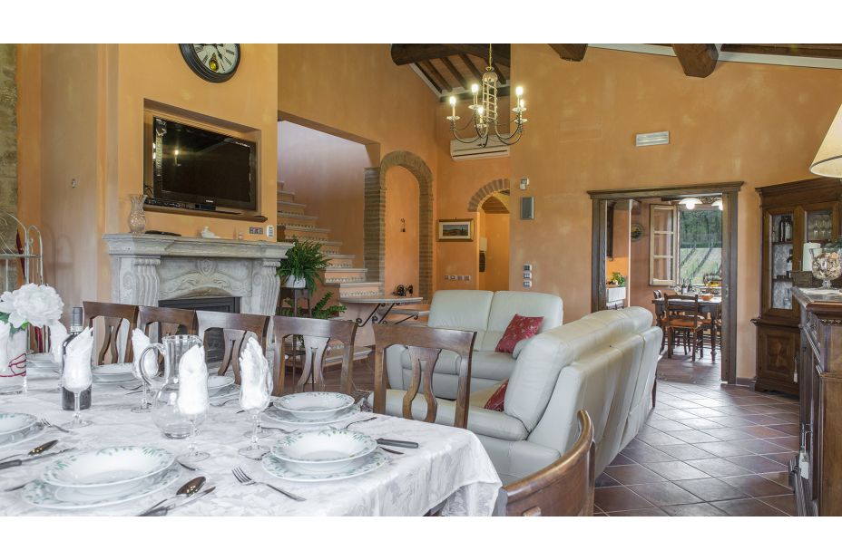 Die Lage dieses Ferien-Domizils ist traumhaft und wird durch viele Besonderheiten zu einem einzigartigen Ort für einen unvergesslichen Toskana-Aufenthalt für eine große Familie oder befreundete Gruppe: Panorama-Terrasse mit beheiztem Whirlpool, möblierte Outdoorbereiche mit Holzofen und gemauertem Grill, Kinderspielplatz mit Schaukel und Rutsche, Tischtennisplatte und Tisch-Fußball.