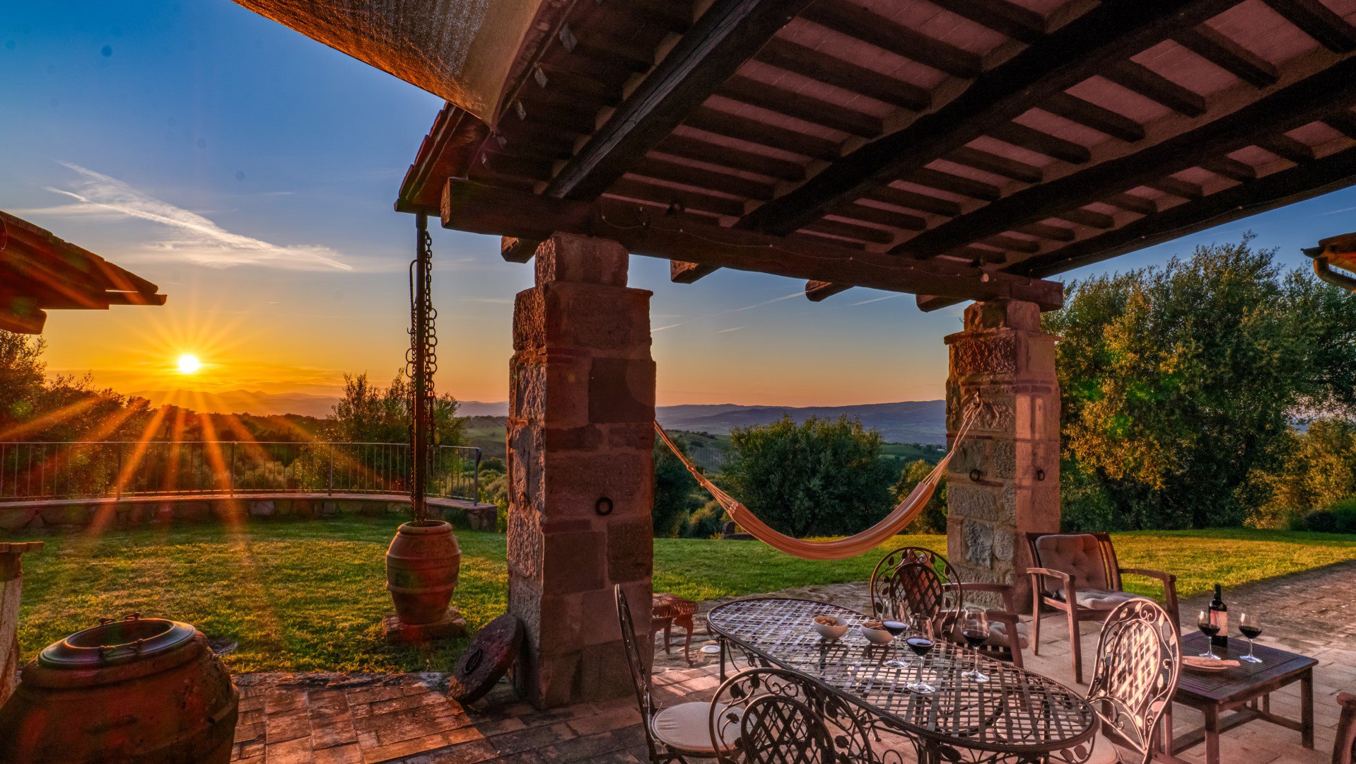 Beim Haus gibt es einen überdachten Sitzplatz mit traumhaftem Panorama-Blick in die toskanische Landschaft.