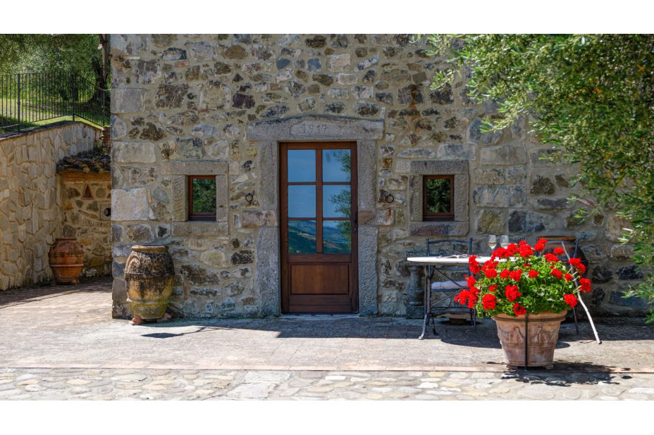 Casa Montebendico wurde sorgfältig renoviert, wobei die Wärme und Atmosphäre toskanischer Bauernhäuser erhalten blieb, mit Holzbalken, Terrakottaböden und überwiegend Holzmöbeln.
