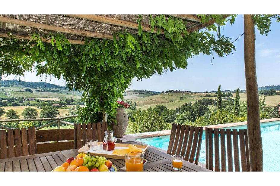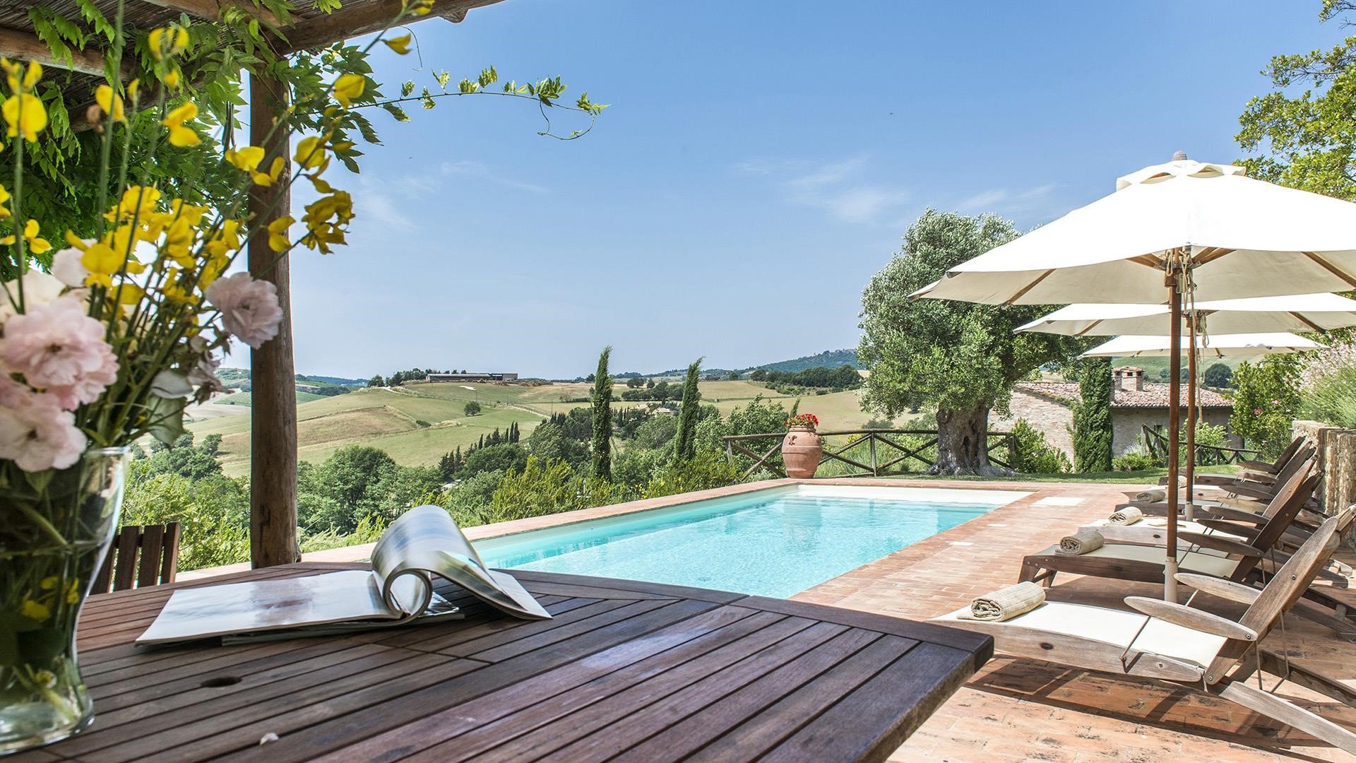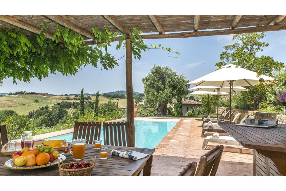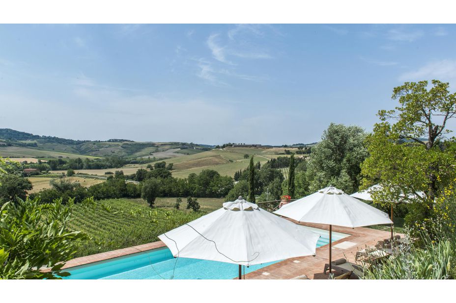 Das terrassenförmig angelegte Grundstück bietet einen herrlichem Blick über Weinberge und die Hügel des Valdichiana.