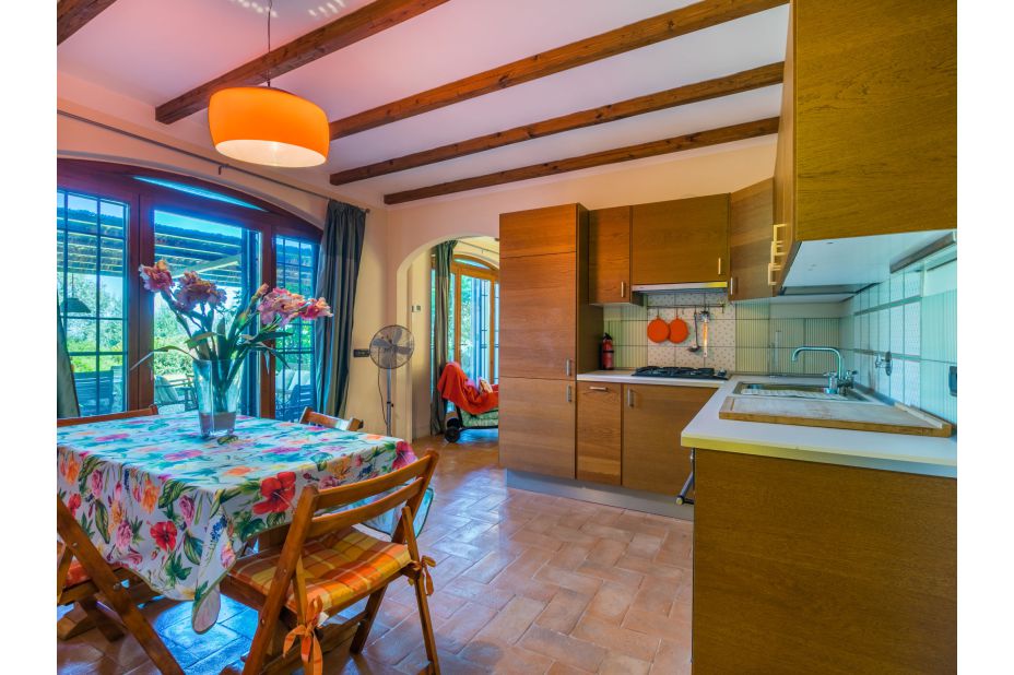 Die hellen Räume sind gut eingerichtet. Cotto- und Fliesenböden. Teils Ziegelstein-/Holzbalkendecken.