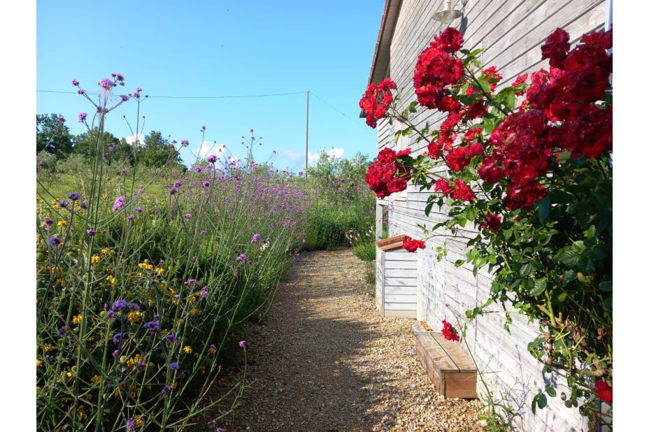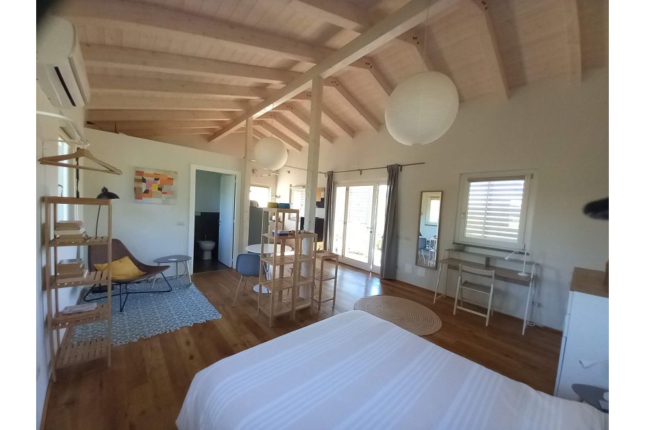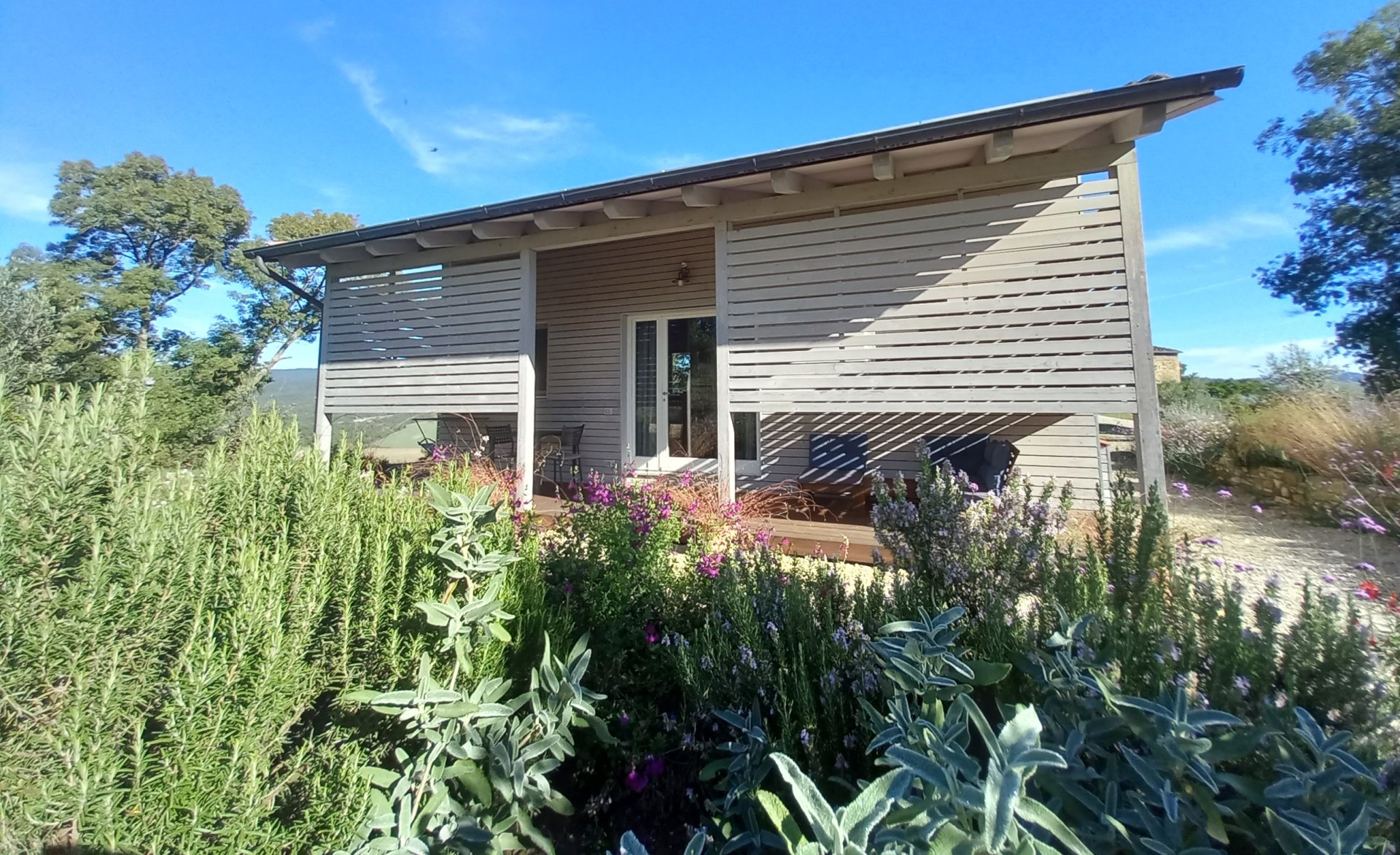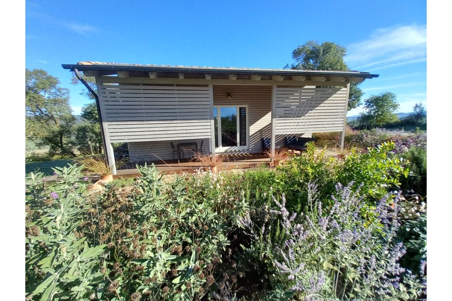 Das Ökohaus wurde 2019 aus 100 % nachhaltigen Materialien erbaut. Es ist vom Haupthaus unabhängig und verfügt über eine große private Terrasse mit Sitz- und Essbereich im Freien.