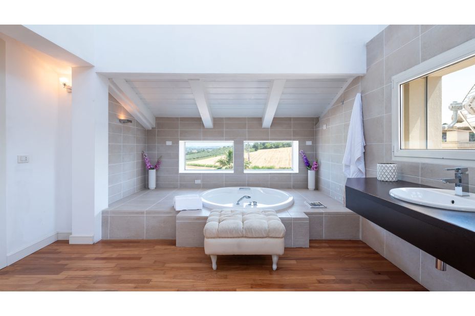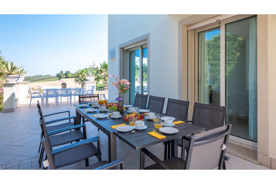Die VILLA BIANCA ist eine moderne und elegante Villa auf den Panoramahügeln von Scacciano, mit Blick auf Gabicce Mare und das historische Schloss von Gradara. Umgeben von einem üppigen privaten Park bietet diese komfortable Unterkunft