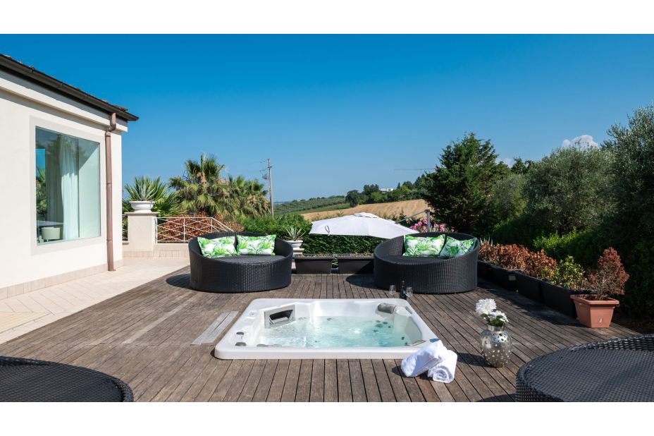 für 10 Personen ein helles Interieur, Dachterrassen und außergewöhnliche Annehmlichkeiten, darunter einen schönen Pool und einen beheizten Whirlpool im Freien.