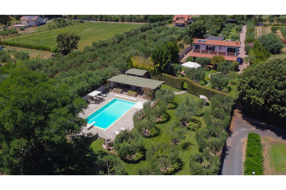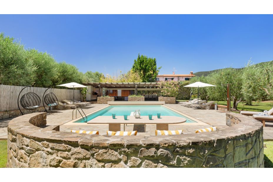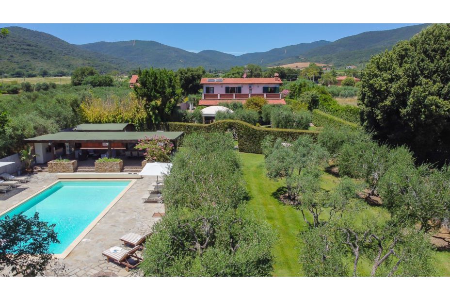 Das eingezäunte Anwesen liegt nur 4 km von Castiglione della Pescaia und der toskanischen Küste entfernt, umgeben von Olivenbäumen und Rasenflächen.