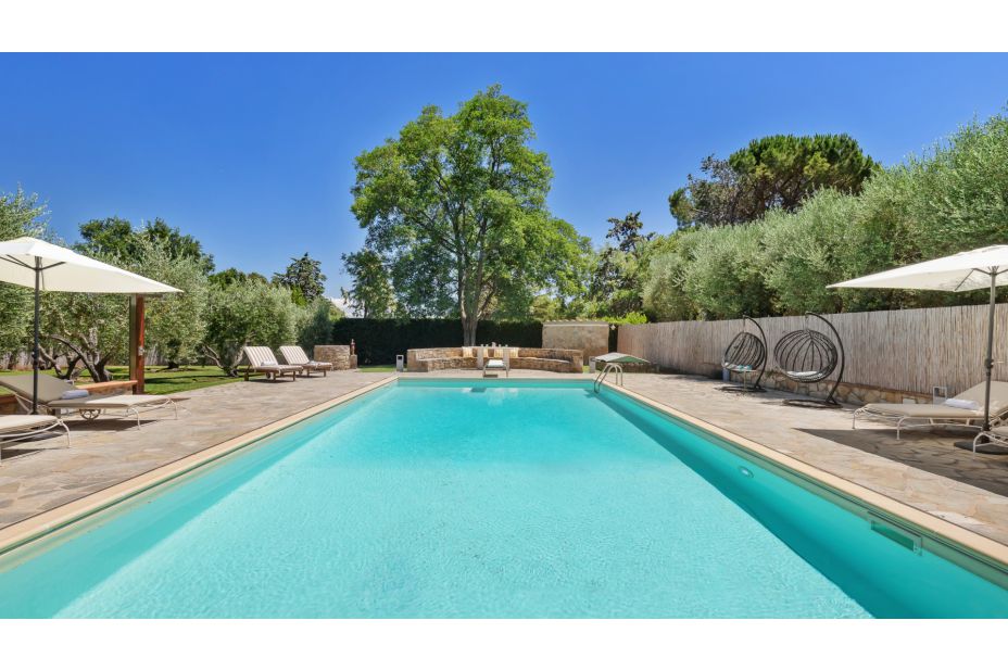 Der Swimmingpool liegt an der Rückseite der Villa, ca. 30 m vom Haus entfernt und ist von Hecken umgeben.