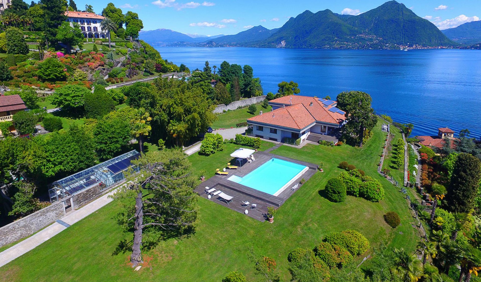 Die VILLA FIORELLA liegt in einem großen Privatpark (8000 m²) mit einem schönen gepflegten Rasen, schattenspendenden Bäumen, blühenden Pflanzen und Blumen und bietet ein atemberaubendes Panorama auf den Lago Maggiore und Umgebung.