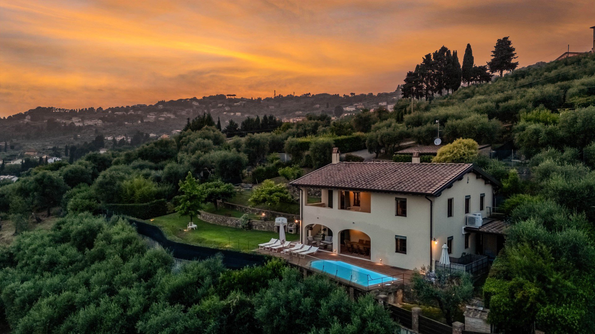 Die VILLA JASMINE liegt im Dorf Corsanico im Ortsteil Bargecchia in einzigartiger Panorama-Lage mit Blick auf Viareggio und das Meer.