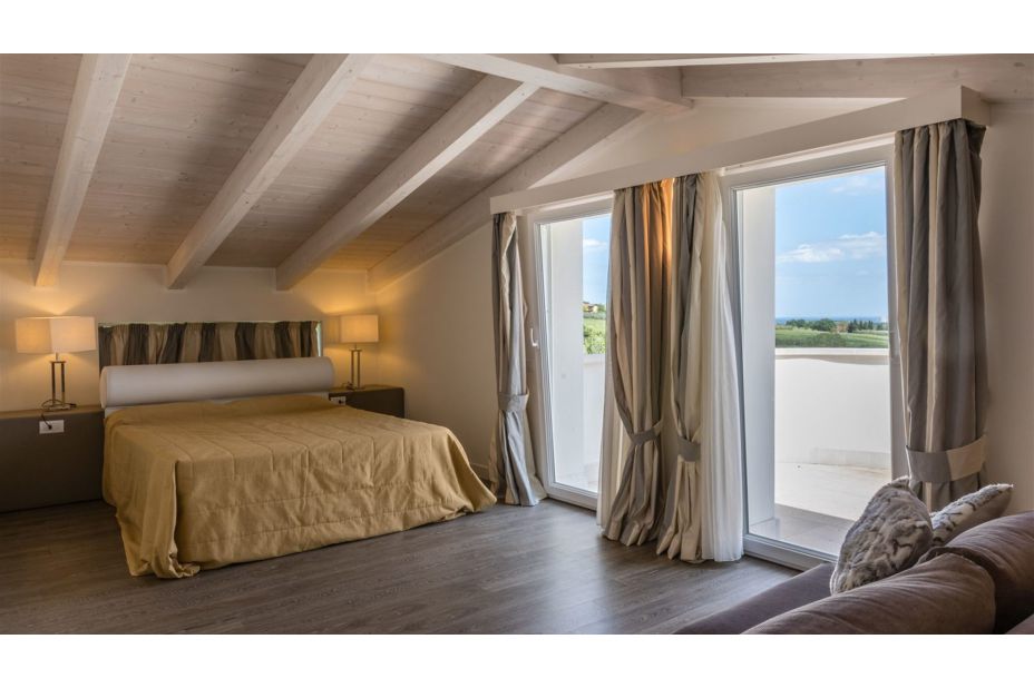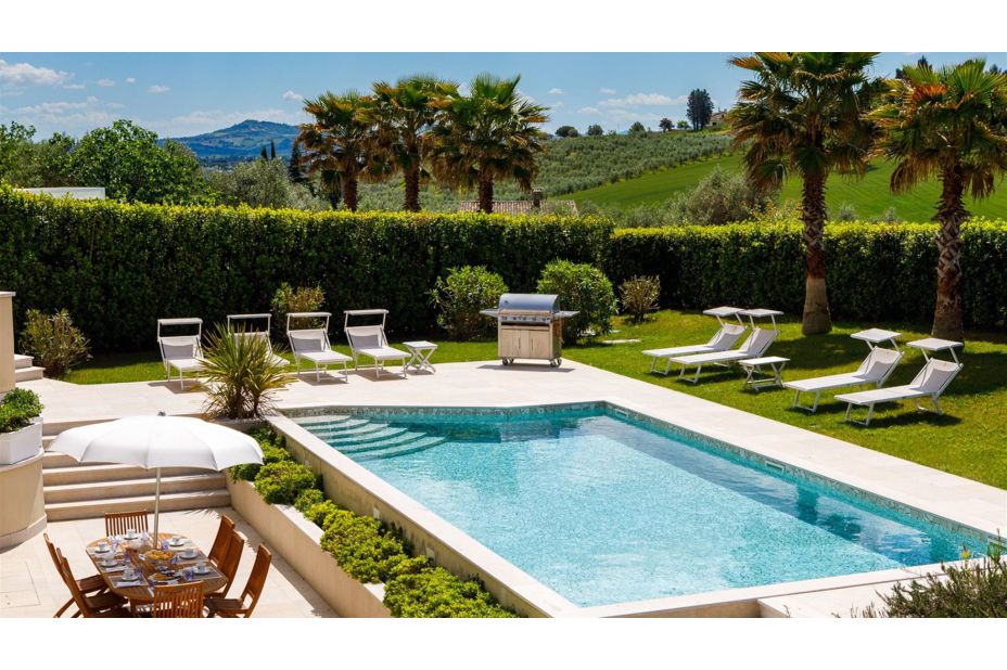 Der Solariumbereich ist mit Sonnenliegen ausgestattet, während Sie im gepflegten Rasen des Gartens, der ihn umgibt, für Momente der Entspannung oder des Spiels verweilen können.