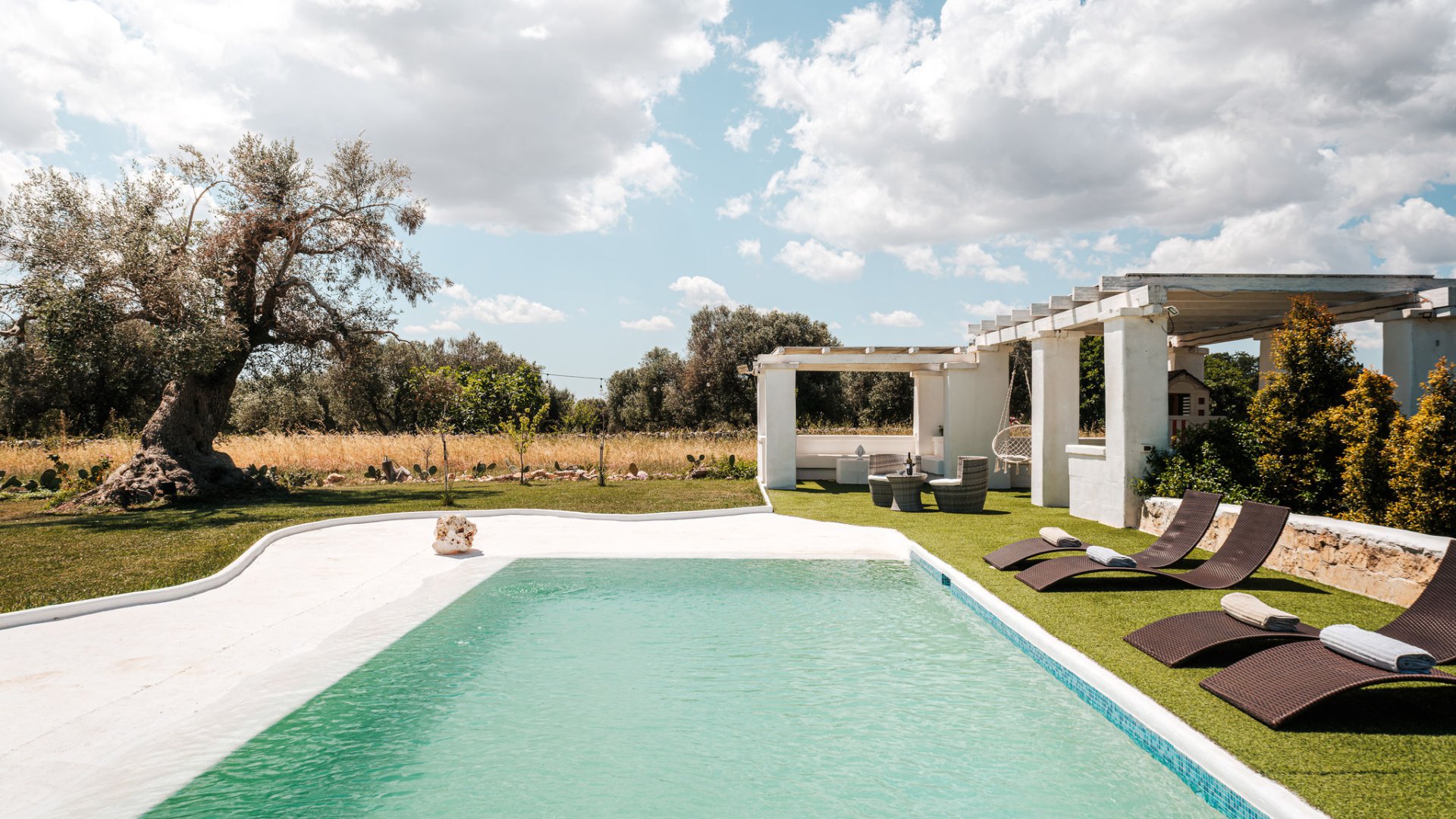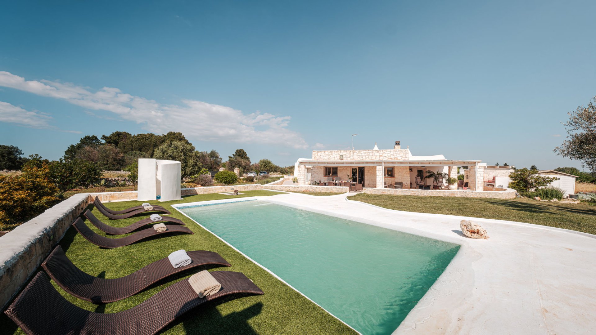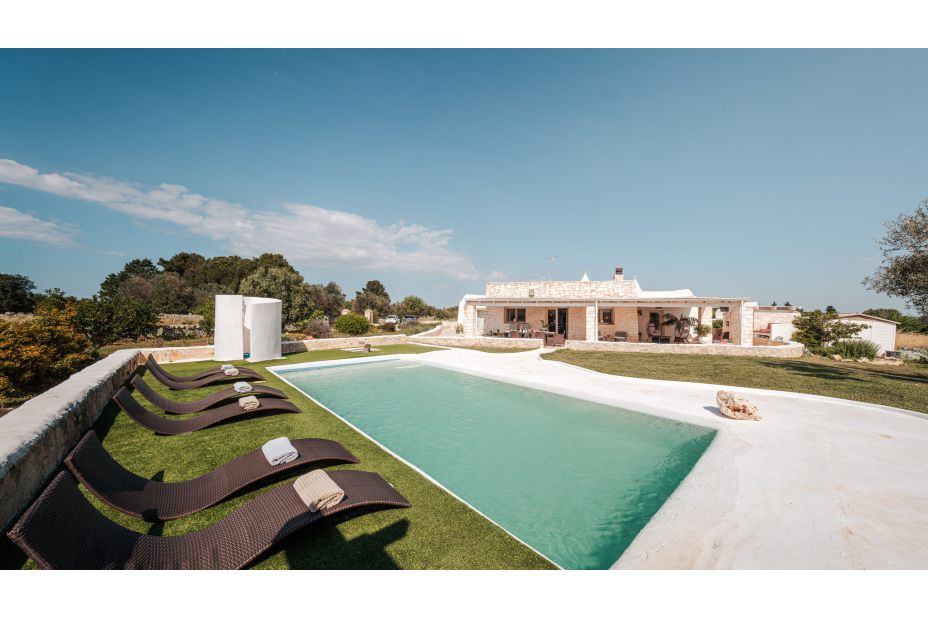 WHITE-STONE-HOUSE ist ein anspruchsvolles und luxuriöses Ferien-Domizil (Trullo) für 7 Personen mit Privat-Pool und Mini-Spa, mit wunderbarem Panorama-Blick auf die sanften Hügel von Apulien - in Nähe von Ostuni und nur 13 km von der Adria-Küste entfernt. Idealer Ausgangspunkt für die Erkundung der Trullo-Region und Ausflüge ans Meer.