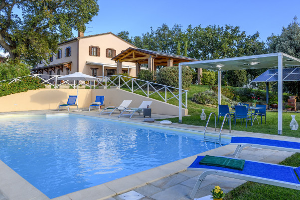 Charmante und elegante Ferienvilla für 8+2 Personen mit Privat-Pool in herrlicher Panorama-Lage nur 15 km vom adriatischen Meer. Gute Einrichtung und Ausstattung, Smart-TV, Internet, Klima-Anlage, gemaueerter Grill, Parkplätze auf dem Grundstück.