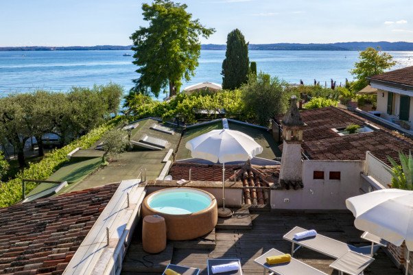 Moderne Terrassen-Wohnung im historischen Zentrum von Sirmione. Whirlpool mit Panorama- und Seeblick. Klima-Anlage