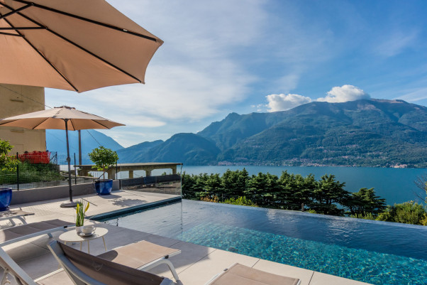 Moderne und komfortable Ferienwohnung für 4 Personen direkt am Comer See bei Gera-Lario. Panorama-Terrasse mit herrlichem Seeblick, Garage, E-Ladestation, Internet - Klima-Anlage