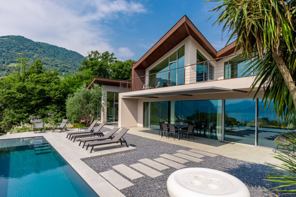 Anspruchsvolle, moderne Ferienvilla für 10 Personen mit Privat-Pool in herrlicher Panorama-Lage LAGO Di ISEO. Top-Einrichtung und Ausstattung: Whirl-Pool, E-Ladestation, überdachte Parkplätze, Klima-Anlage, WLAN, u.v.m