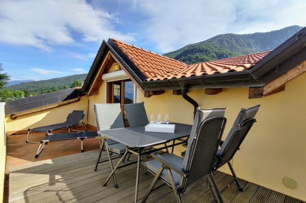 Schöne Ferienwohnung für 4 Personen mit Dachterasse (See- und Bergblick) und Swimmingpool, 2,6 km vom Lago Maggiore.
